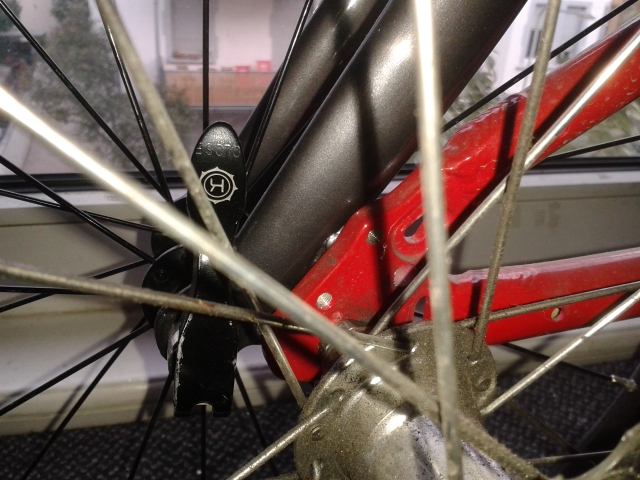 Allerdings geht es nur, wenn man das Rad kurz aus der Achse hebt für etwas Einschlag, um den Anlöter für Magneten rüber zu liften - oder man müsste den absägen. Ich schätze das lohnt sich. Das riegelt auch schön in der Lücke ein, ohne Spiel. Man sollte die Gabel dann aber gegen Kratzer abkleben.