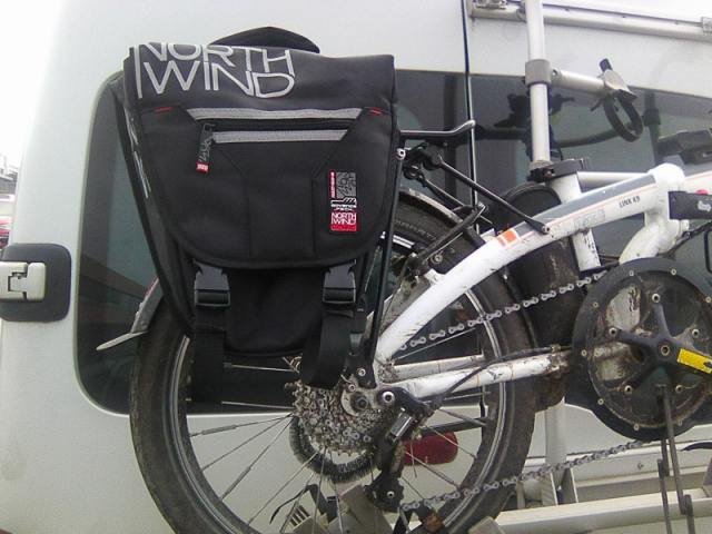 Da ich gerade in der Gegend zu tun hab, bin ich endlich mal zum www.derfaltradshop.de gekommen. Dort habe ich eine Packtasche von Northwind entdeckt, die an der Basis schmal genug für meine großen Füße ist.