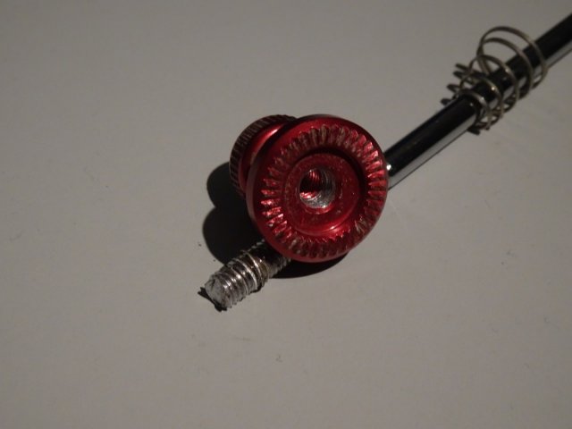 Achsen von Getriebenaben sind in der Qualität meist besser als die Befestigungsmuttern, da es sinnvoller ist, daß das Gewinde der Mutter geschrottet wird als die Achse zu schrotten. Dieses Prinzip kann man natürlich auch auf Schnellspanner anwenden.