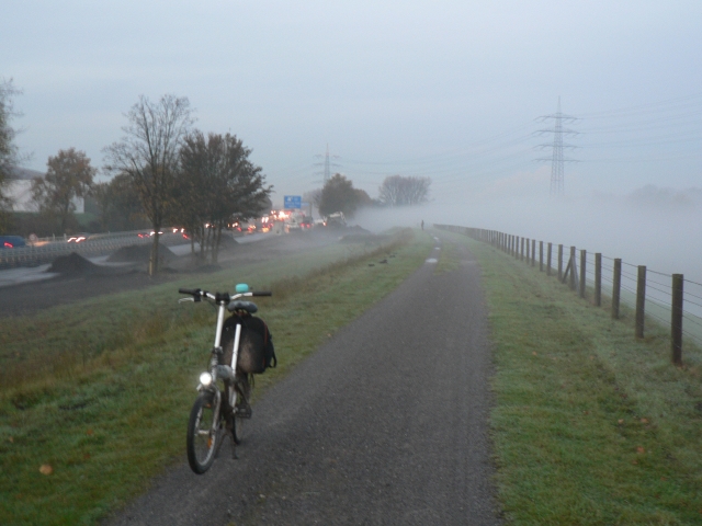 doch das ist mein Ernst, in den Sommermonaten und am Wochenende ist hier natürlich mehr los. Diese Strecke war 32 km (eine Richtung). Ja, ich fahr jeden Morgen und Abend. Zur Zeit habe ich drei Einstiegspunkte für die Fahrt nach Bochum, meine Standardstrecke ist 23km, mein "ich habs besonders eilig" oder "Orkan droht/Regen fällt horizontal" Abschnitt ist 13 km lang, und meine "ich hab gestern für zwei gegessen"- oder "ich hab gestern den kurzen Abschnitt benutzt"- Strecke ist 32 km. Die Einstiegspunkte sind so gewählt, dass ich mein Auto halbwegs sicher nahe der Autobahn abstellen kann.