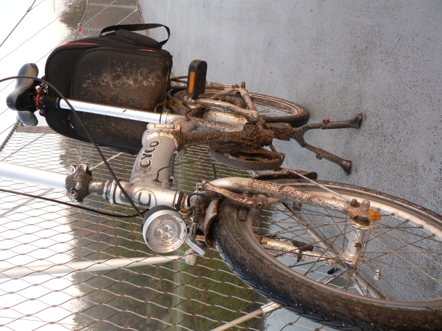 das sieht schlimmer aus als es ist. Wegen meiner Cowboy-Beine bleibt meine Hose sauber und der Dreck trifft nur die Tasche und bei Regen wird der Dreck direkt wieder runtergespült. In dem Zustand brauche ich das Rad in der Stadt noch nichteinmal abzuschließen. :P