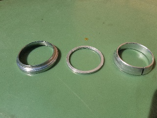 Der Konusring ganz links kommt sicherlich als erstes in die untere Seite des Gabelschafts, denn dort sieht man die Kugeln des Lagers und die passen zu dem Konusring.