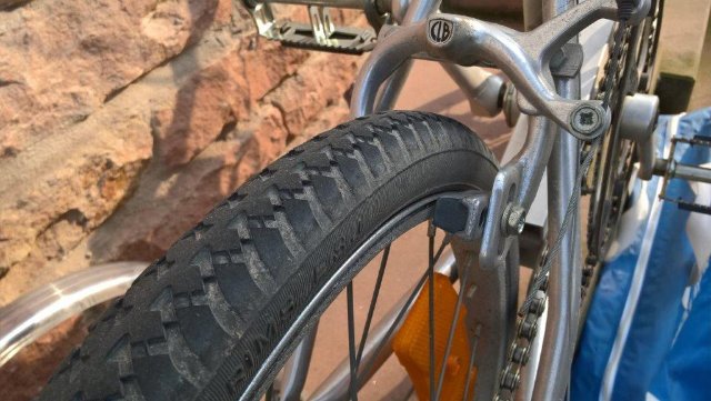 Das Rad ist in gutem Zustand. Die Tasche hat Lagerungsspuren, ist aber in Ordnung.