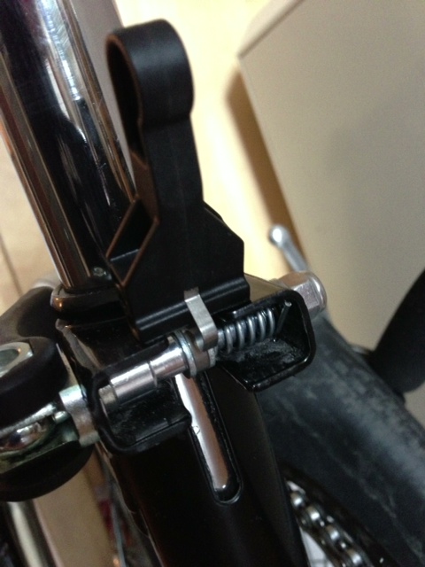 hat hier jemand schon mal die Hinterradarretierung so gedreht, dass der Hebel zur Arretierung nach oben zeigt? Ich möchte gerne ein kleines Bordo mitnehmen und deswegen habe ich diesen Hebel nach oben verlegt. Jetzt klappert das ganze aber ein wenig.