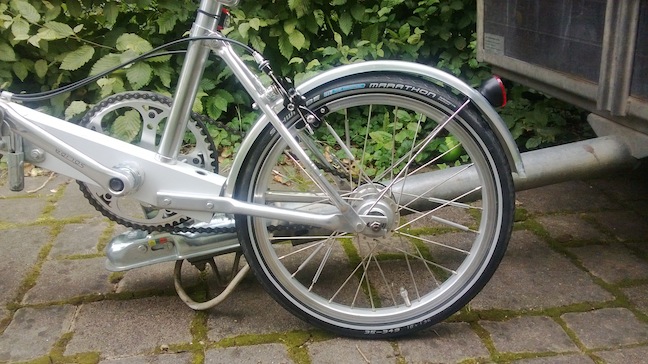 Wie gesagt, jedes 349er Hinterrad mit 120mm-Nabe wird passen, muß also nicht zwingend von Brompton sein.