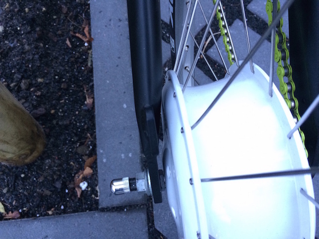Ich habe mich seiner Zeit für die 20"-Version entschieden und ein Dahon mü Uno für den Umbau auserkoren. So ganz einfach gestaltete sich der Umbau jedoch nicht, was aber an der etwas ungewöhnlichen Rahmengeometrie des Dahon liegt und nicht am Hinterrad selbst. Das Problem war, dass im Lieferzustand die Kette leicht an der Strebe des Hinterbaus gestreift hat. Dies ließ sich durch Montage eines 16-er anstelle des 18-er Ritzels und Umdrehen eines kleinen Spacers beheben.