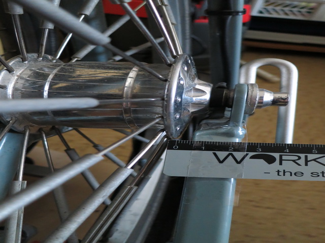 "Wenn ich mich richtig erinnere, verbaut R&M Gabeln mit einer Klemmweite von 100 [mm], aber Naben mit schmalem Flanschabstand (Wie bei 74 [mm] Naben) und langer Achse. Der Längenausgleich wird durch Hülsen angepasst.