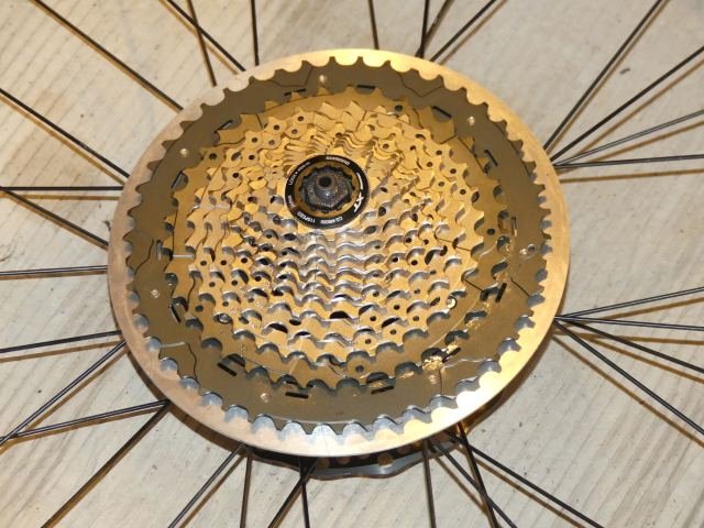 Die ganze Kassette ist sowieso ziemlich hässlich, so kommt es auf diesen blanken Aluring auch nicht mehr drauf an, find ich. Das Ganze würde in schwarz besser zu diesem Rad passen. Das ist erst mal nicht wichtig. Wenn mich das genug nervt, lass ich den Ring noch eloxieren.