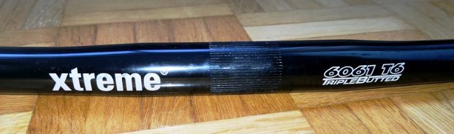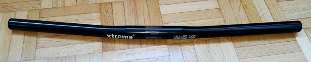 Hier bekommen Sie einen geraden Lenker von Xtreme. Er ist aus schwarzem 6061er-Aluminium, 54 cm breit und wiegt nur 186 g (selbst gewogen). Der Klemmdurchmesser beträgt 25,4 mm (1 Zoll), der Griffdurchmesser 22,2 mm. Er wurde nur kurz gefahren und ist damit zwar gebraucht, aber in einem guten bis sehr guten Zustand.