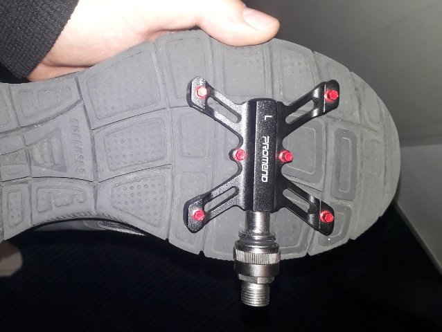 Vielen Dank! Womöglich kommt bei mir alles Negative zusammen, Hang zum ungeeigneten Schuh mit breiter weicher Sohle, alle möglichen Fussfehlstellungen, Schuhgrösse und Neigung zum Minimalismus was Komponenten angeht. Die gezeigte Pedale fahre ich nicht, ist völlig unbrauchbar für mich, 75x80mm Plattform, war nur grad greifbar. Ich mache mich wieder auf die Suche nach geeigneterem Material.