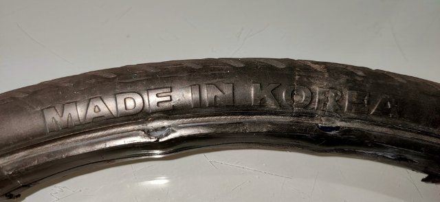 Der Zustand ist von daher gebraucht mit entsprechenden Spuren und natürlich voll funktionsfähig. Bei der Demontage hat der eine an zwei Stellen innen etwas gelitten (siehe Bild). Natürlich halten sie mit den 26 Pins trotzdem bombenfest. Der Hersteller verspricht eine Laufleistung von mindestens 8.000 km, und das glaube ich sofort. Ich verkaufe sie, weil ich auf Tannus-Reifen in der Größe 28-451 umrüste. Alle meine Sachen stammen aus einem tier- und kinderfreien Nichtraucherhaushalt.