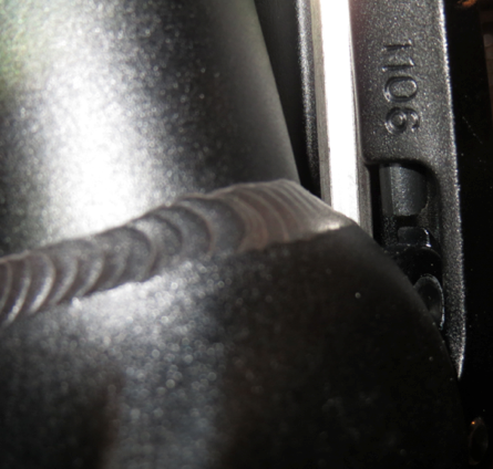 Anbei zwei Bilder. Das erste zeigt den Schnellspanner am Lenker (analog für den Spanner am Rahmen) und die goldene Sicherung. Beim zweiten Bild ist klar zu sehen, dass zwischen der Nase am Lenkerrahmen und diesem Sicherungssplint ein Abstand von 0,5 cm ist, und somit die Sicherung nie einrasten kann, ist das bei anderen auch so ?