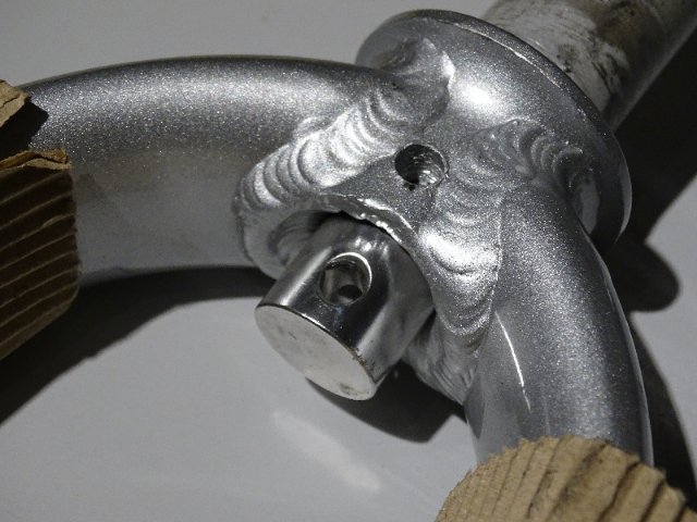 Die Gabel, Vorderrad, der Steuersatz und die Lenksäule mit Andros Vorbau müssen in jedem Fall neu. Die Gabel ist am obern Ende direkt beim Rahmen abgeknickt.
