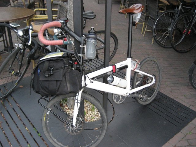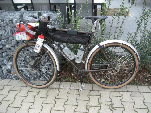 Insgesamt sind 66 Teilnehmer an den Start gegangen. Bei den Fahrrädern gab es wieder einiges zu bestaunen. Dieses mal war ich nicht der einzige Faltrad-Teilnehmer. Ein sportliches 22" Rad mit Rennlenker war auch vertreten. Der Rahmen war allerdings aus einem Stück. Gewagt: Der lange Schaltkäfig mit gut 3 cm Bodenabstand ging fast als Stützrad durch. Gefahren von einem erfahrenem Fahrer mit Paris-Brest Erfahrung (1200 km).