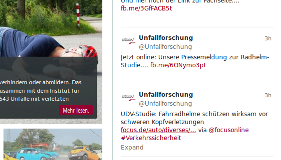 Jetzt wird es aber noch hübscher: Die Quelle,also UDV, (Unfallforschung der Versicherer, Teil des Gesamtverbandes der deutschen Versicherer) verlinkt wiederum zu Fokus(online) :mrgreen: (Siehe Scan von der Homepage)