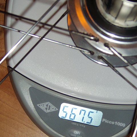 Die Naben sind eine 84mm Kinetix / 14L vorne und eine 130mm American Classic / 16L f. 10-fach hinten, beide mit Sapim DD Speichen.
