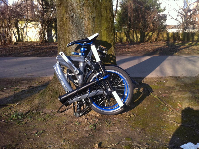 fährt sich leicht und sehr schnell faltbar in ca. 15 Sekunden! Pedale können abgenommen werden umd in einer Vorrichtung am Rahmen eingeklinkt werden.