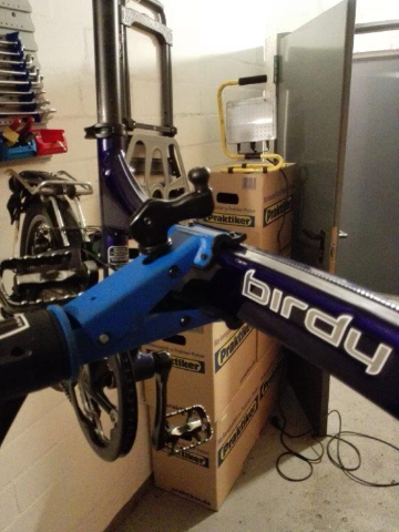 Das Birdy lässt sich bei diesem ständer problemlos am Rahmen fixieren. Die Öffnungsweite der "Clamp" gibt dies her. Siehe dazu die beigefügten Bilder.
