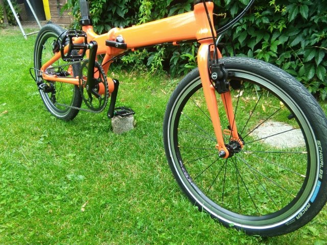 nachdem ich jahrelang nur stiller Mitleser war, möchte ich euch eines meiner drei Falträder vorstellen. Entstanden aus einem rohem Vitesse Rahmen und nach meinen Vorstellungen aufgebaut. Ich hoffe, das es mit den Bildern klappt....