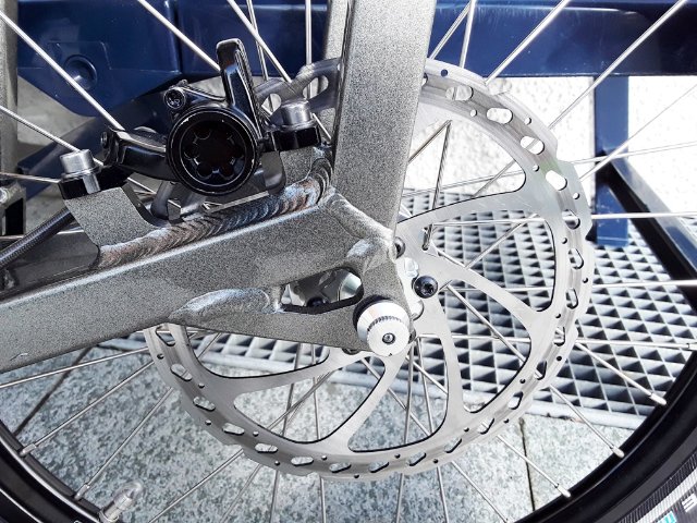 Die Rohloff-Schaltbox halte ich auch nicht unbedingt für der Weisheit letzten Schluss. Aber sie ist wesentlich solider als die SRAM-Klickbox. Die ist aus Kunststoff und sieht nicht nur zerbrechlich aus, sondern es ist jedesmal ein Gefummel und Gepfriemel, die Schaltachse wieder richtig hineinzubekommen. Vor allem aber ist aus meiner Sicht die Rohloff-Nabe mit ihren 14 gleichmäßig abgestuften überschneidungsfreien Gängen technisch eine wesentlich elegantere Lösung als jede 2 oder 3 x 8/9/10/11, egal ob mit Dual Drive oder vorderem Umwerfer. Vergleichbar höchstens mit 1 x 13, aber um den Preis eines extremen Kettenschräglaufs, und ich bin nicht sicher, ob sich ein 50er-Ritzel mit 20-Zoll-Laufrädern verträgt.